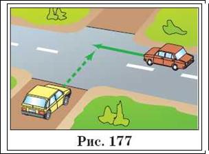 Читач А: У мене виникло питання. Водієві на перехресті необхідно повернути ліворуч або розвернутися Для нього включений зелений сигнал світлофора, стоп-лінії немає (див рис. 174) Ми знаємо, що в цій ситуації необхідно дати дорогу зустрічним транспортним засобам, які рухаються прямо або направо (п. 13.4 Правил) . Припустимо, що з зустрічного напрямку рухається суцільний потік машин, який припинить рух тільки при заборонному сигналі світлофора Як же в цьому випадку повернути ліворуч або розвернутися, якщо перед водієм, що збираються зробити цей маневр, тепер теж загорівся червоний сигнал?