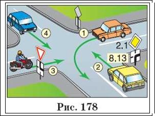 Автор: Звичайно треба, якщо зустрічний транспортний засіб рухається через перехрестя прямо або направо (п 13.4 Правил) Але в нашому випадку (рис. 174), водій повинен повернути безупинно, так як зустрічних транспортних засобів немає.