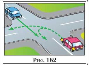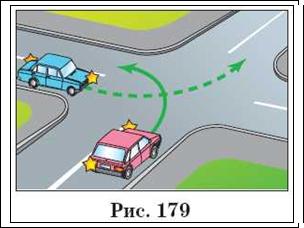 Автор: На рис. 179 і 180 перед нами перехрестя рівнозначних доріг. На ньому поступається дорогу водій автомобіля, що наближається до перехрестя справа. Правило, сформульоване в п 13.11, водії часто називають правилом «правої руки».
