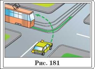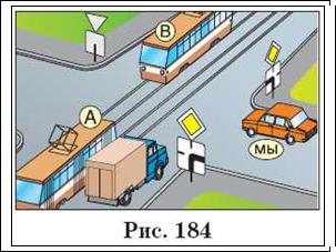 Автор: Тепер все правильно, а цифрами на цьому малюнку показаний порядок проїзду. Але зверніть увагу, що якщо на перехресті рівнозначних доріг є трамвай, то він має перевагу перед безрейковим транспортним засобом в будь-якій ситуації (рис. 181)