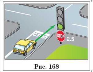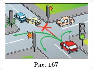 Читач Б: Ну, а якщо перед перехрестям установлено світлофор і на ньому горить зелений сигнал (рис. 167)?