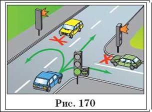 Читач Б: А якщо і в основний і додаткової секціях світлофора горить зелений сигнал (рис. 170)?