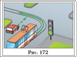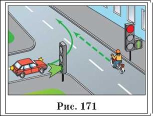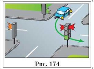 Читач Б: Мені не зовсім зрозумілий сенс першого речення п. 13.7. Адже після повороту водій виявляється перед червоним сигналом світлофора (рис. 174)