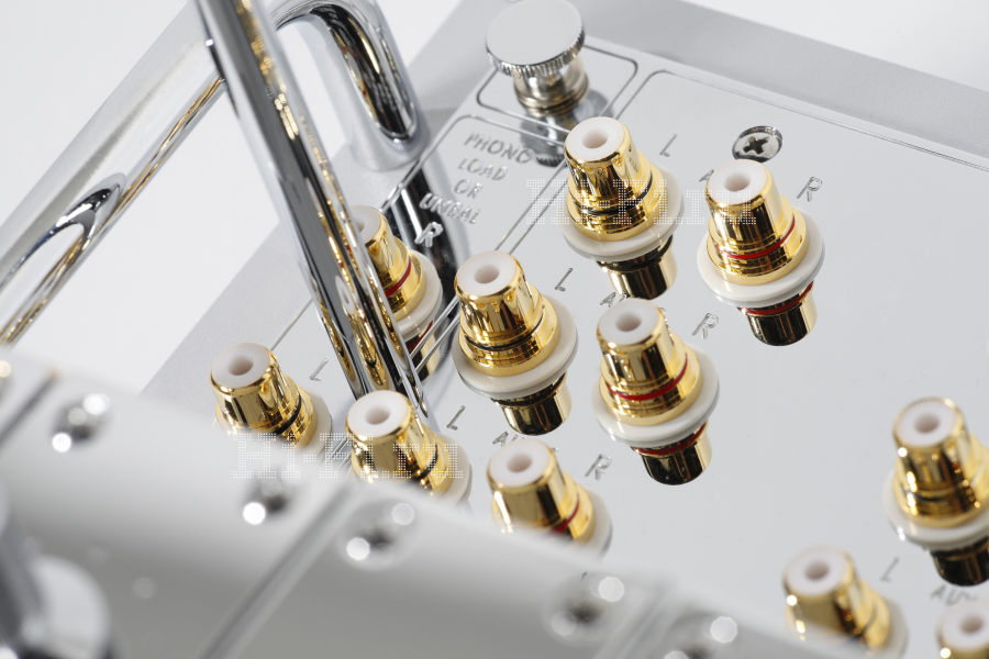 Щоб закінчити з описом Burmester 808 Mk5, додам, що кожен вхідний модуль являє собою повноцінний попередній підсилювач, оптимізований під конкретний тип сигналу (специфічного джерела, включаючи аналогові - магнітофон, вінілову вертушку і програвач CD). В силу вкрай великої функціональності апарату на ньому дуже багато (незвично багато, спочатку навіть здається, що надто) перемикачів і регуляторів. Але входи, виходи, екрани, селектори, тумблери - все це підписано, щоб не ламати собі голову, що і в якому становищі має стояти, так що навіть керівництво по експлуатації можна не вивчати. Підписи вигравірувані на тій же бездоганною дзеркальної поверхні. Панелька з небалансних входами-виходами має два виступаючих хромованих штиря, щоб при демонтажі можна було підняти її за них і акуратно видалити. Ніжки укріплені в отворах алюмінієвої плити. Для додаткової віброразвязкі в комплекті є карбонові шайби, які треба вкласти в отвори в плиті, а тому вже на них ставити апарат.