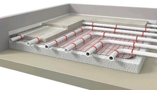 2. Стійкість до зовнішніх впливів. Саме від неї залежить довговічність контуру, що заливається бетоном. Моноліт після застигання стає потужним накопичувачем і розподільником тепла (варіанти з використанням «сухий» стяжки менш ефективні). Єдиний мінус: діагностика при поломки складна, заміна окремої ділянки трубопроводу практично неможлива. При пориві систему доведеться демонтувати цілком.