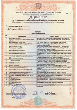Натисніть, щоб збільшити сертифікат відповідності Kayaba.
