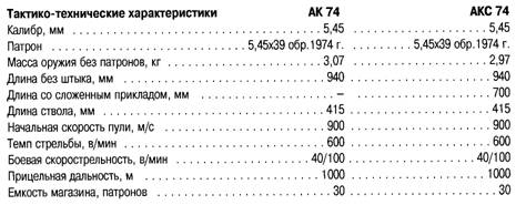 При тій же довжині стовбура балістичні характеристики АКС 74 - ті ж, що у АК 74. Так само автомат АКС 74 має ті ж характеристики скорострільності і використовує ті ж магазини, що і АК 74.