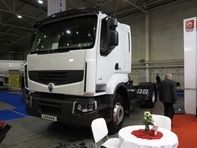 Українське представництво привезло на виставку цілий ряд різних вантажних автомобілів Renault Trucks. Так, флагман марки - магістральний тягач Renault Magnum - представлений з системою телематики Optifleet. Остання дозволяє операторам автопарку відстежувати місцезнаходження автомобіля в режимі реального часу, контролювати його технічні характеристики, а також стежити за роботою водія. Крім того, система дає можливість зв'язуватися водіям з автопарком за допомогою СМС-повідомлень. Renault Magnum був показаний з турбодизелем стандарту Євро 5 потужністю 480 к.с. і автоматичною коробкою передач Optidriver +.