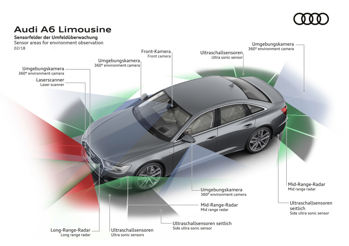 Нова А6 отримала автопілот для паркування і автопілот для заїзду в гараж, які в автономному режимі направляють седан на місце для паркування або в гараж і забезпечують виїзд з нього. Водій може вийти з автомобіля перед активацією відповідної системи і спостерігати за процесом за допомогою програми myAudi на своєму смартфоні.