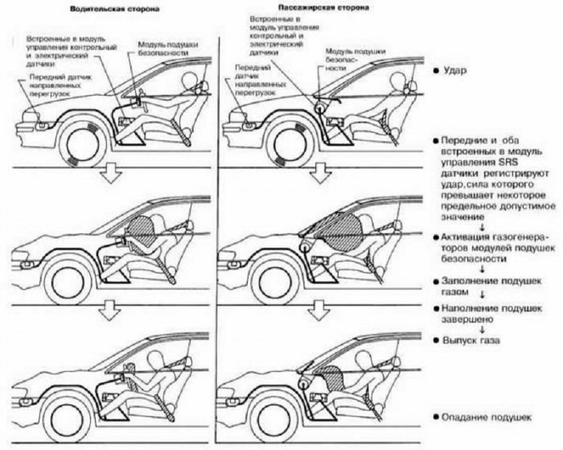 У разі аварії подушки миттєво розкриваються і дають можливість запобігти жорсткий контакт водія (пасажира) з деталями інтер'єру транспортного засобу, виключаючи небезпечні перевантаження. Однак це справедливо лише в разі аварії на середній швидкості - в ДТП на високій швидкості можна розраховувати лише на удачу.
