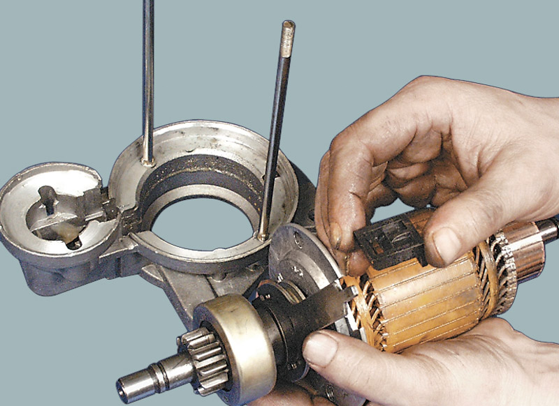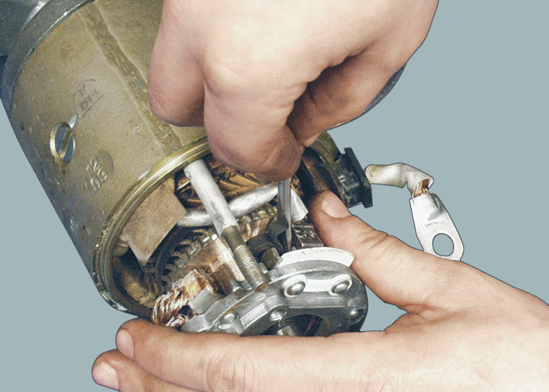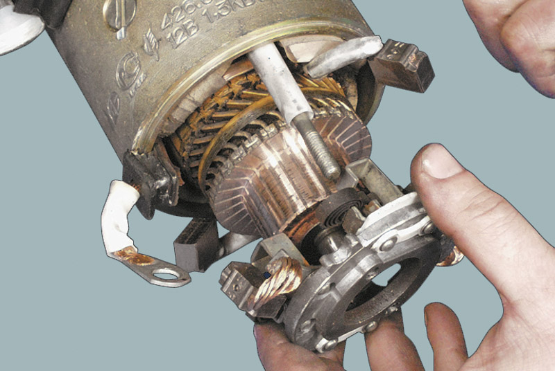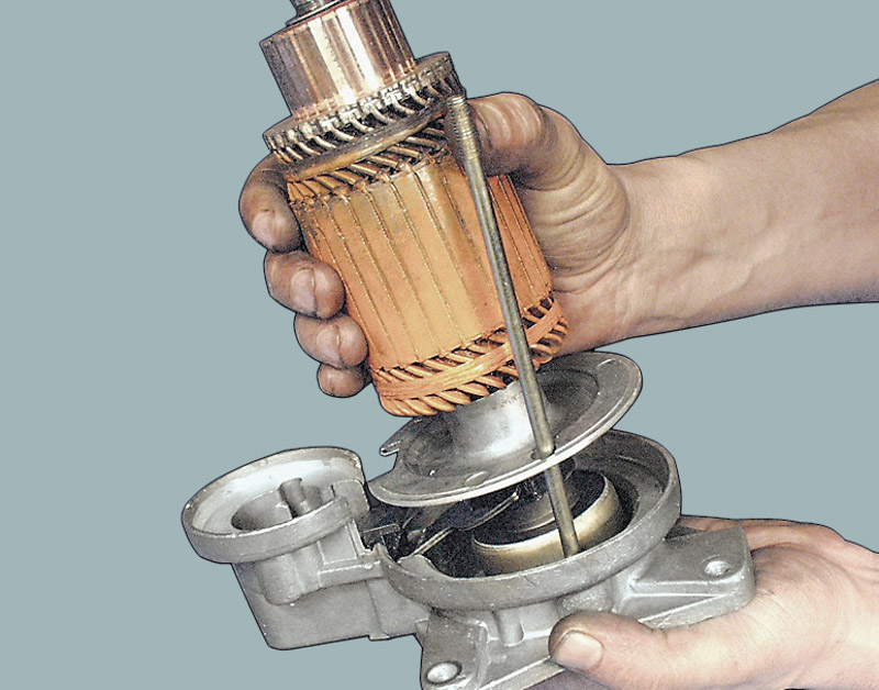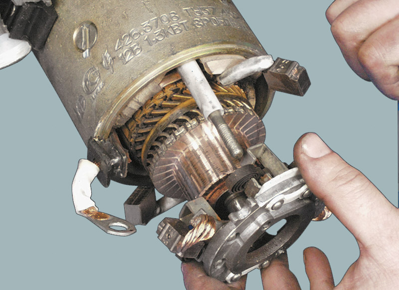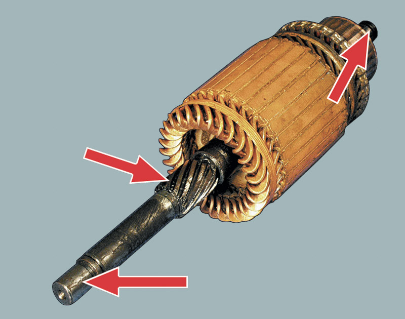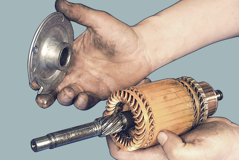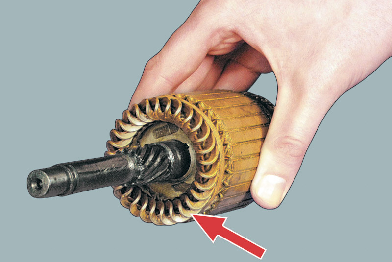 Обмотки якоря можна перевірити мегомметром. Один його контакт підключіть до колектора, інший - до сердечника якоря. Опір обмоток повинно бути не менше 10 кОм. При меншому опорі замініть якір.
