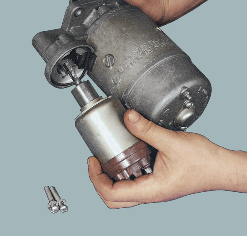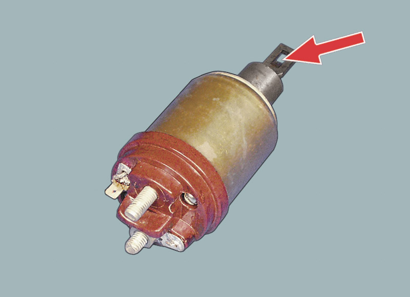 Обмотки тягового реле встановлені в нерозбірному корпусі, тому при їх пошкодженні замінюйте тягове реле в зборі.