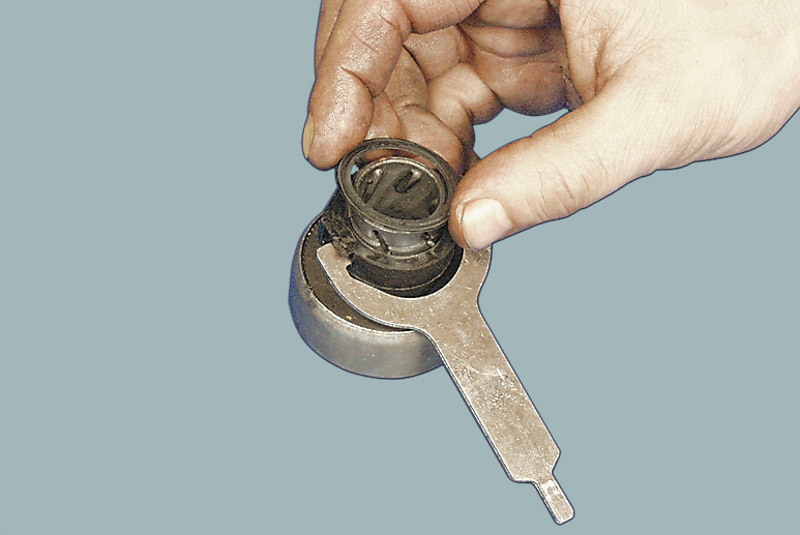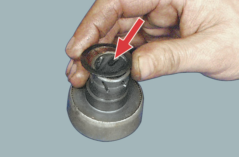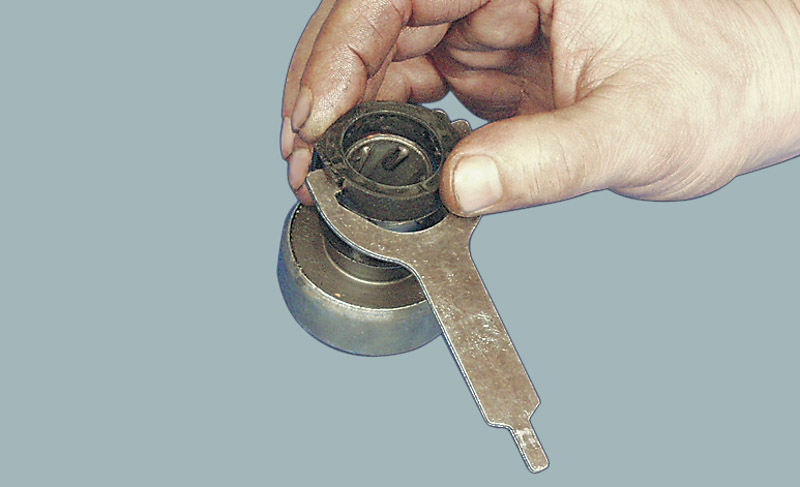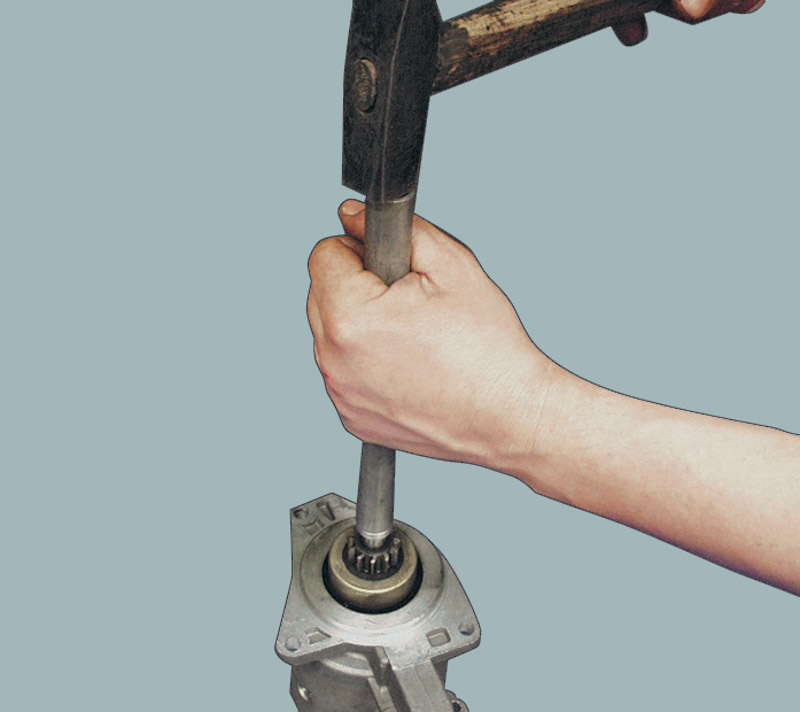 Втулка розташована в глухому отворі картера зчеплення і тому важкодоступна. Щоб видалити втулку, загорніть в неї мітчик підходящого розміру до упору в дно отвори, як би нарізаючи у втулці різьблення. При подальшому обертанні мітчика втулка буде випрессованного з отвору.