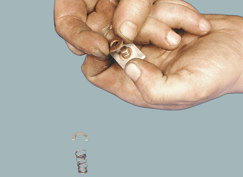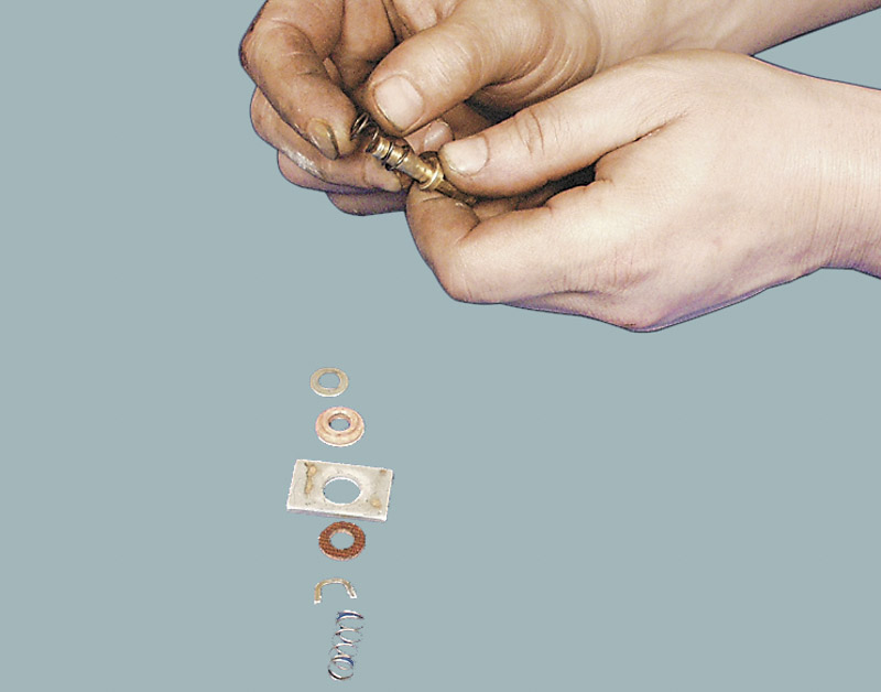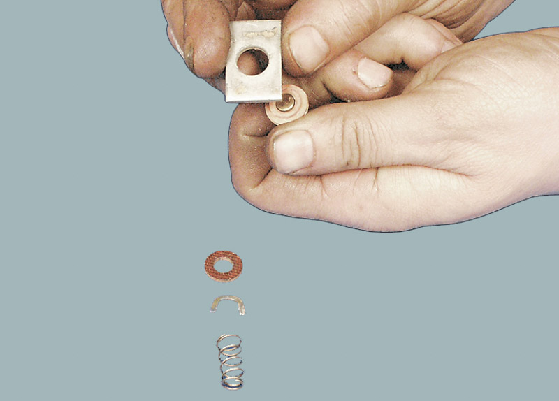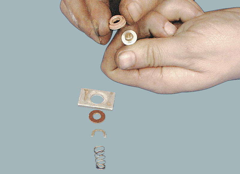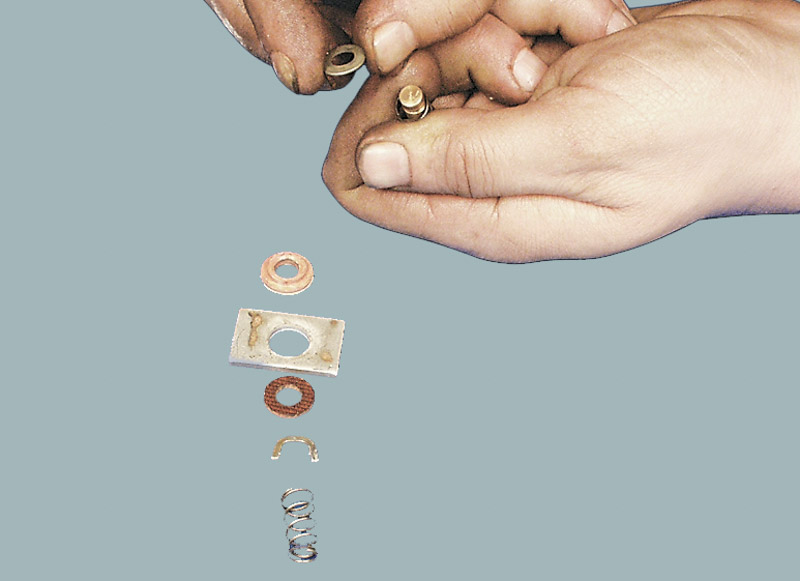 Деталі кріплення контактної пластини (показані в порядку установки на шток).
