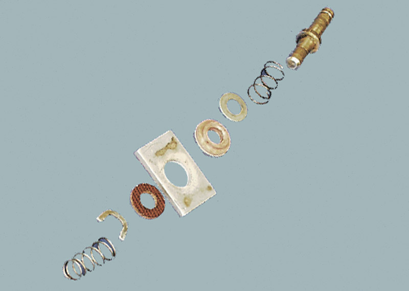 - Деталі кріплення контактної пластини (показані в порядку установки на шток).