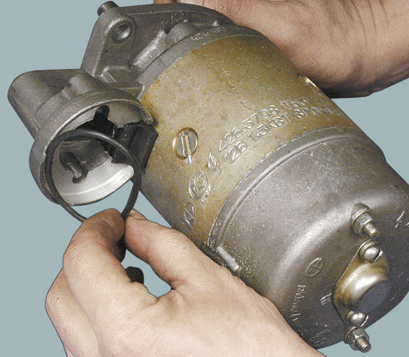 - 21. Зніміть стопорне кільце з приводу стартера.