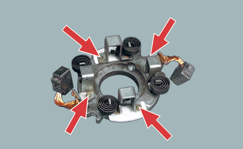 Ізольовані щітки А припаяні до висновків обмоток статора, а неізольовані Б - до щіткотримача. При знятті щіткотримача ізольовані щітки залишаються на виводах обмотки статора.