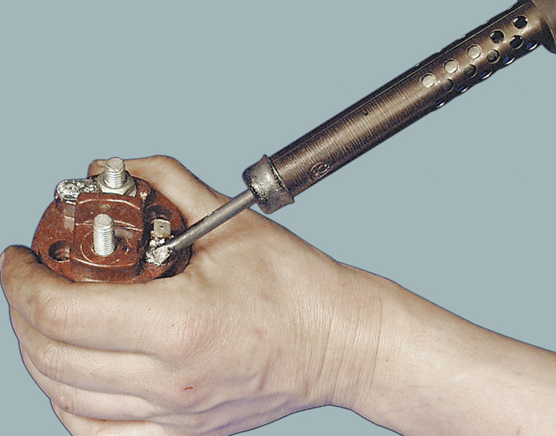 - 1. Надійно припаяйте висновки обмоток до контактів тягового реле.