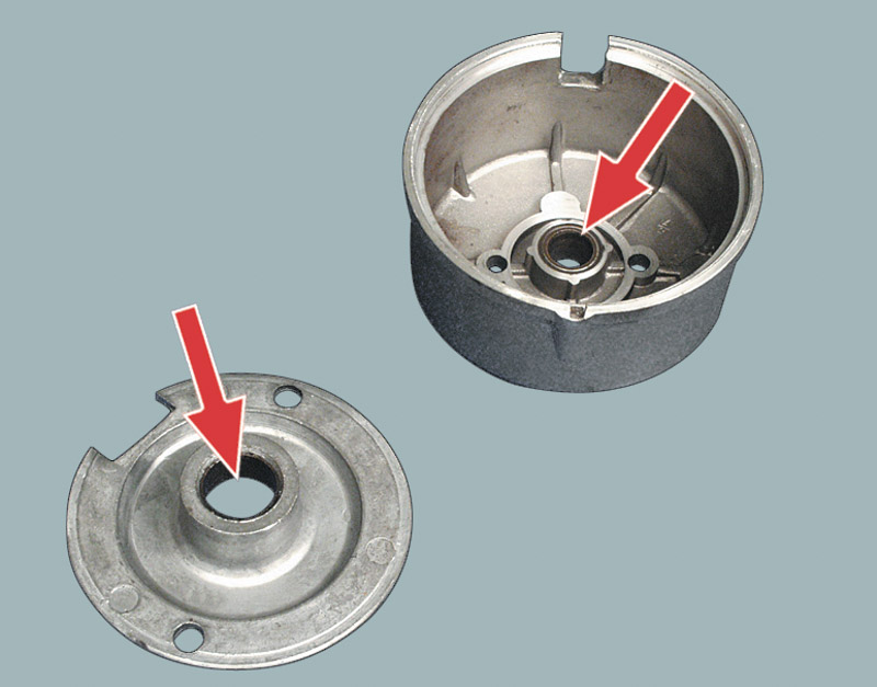 49. Огляньте кришку стартера з боку колектора та проміжну опору. Якщо на цих деталях з'явилися тріщини, замініть їх. Огляньте також втулки в кришці і опорі, в яких обертається вал якоря. При виявленні сильного зносу або механічних пошкоджень замініть кришку або опору з дефектними втулками.