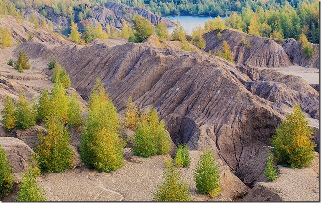 Кондукі ми вирішили відвідати раптово - Марина відправила незвичайні по красі фотографії романцевскіх гір, і ми вирішили особисто упевнитися в пишноті цієї гористій місцевості з бірюзовими і блакитними озерами в Тульській області. Ці кар'єри нагадують марсіанські рельєфи. Коли ми піднялися на одну з гір, ми отримали велике задоволення - перед нами простиралися озера синюватого, бірюзово-зеленого, яскраво-блакитних кольорів і зяяла пустельна місцевість кар'єра зі зростаючими в розломах деревами.