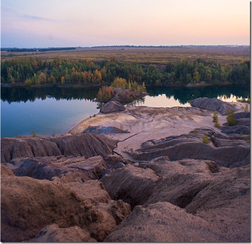Легко оцінити висоту кар'єра. Внизу біля озера важко помітні силуети людей. Машини, які стоять далеко, відмінно піднімаються в гору. Бачили, як люди літають на парапланах - захват, помножений в кілька разів!