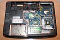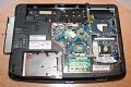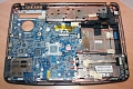 Для ремонту материнської плати, продовжуємо розбирання ноутбука. Знімає CD-DVD привід, і знімаємо модуль WiFi, від'єднавши антени. Після зняття модуля WiFi від'єднуємо роз'єм модему, відкручуємо залишилися гвинти на нижній частині ноутбука (17 штук) і перевертаємо ноутбук в початкове положення.