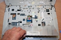 Спеціальним інструментом або щось схожим на нього, видаляємо декоративну планку. Піднімаємо клавіатуру і, від'єднавши її роз'єм, відкладаємо її в сторону.