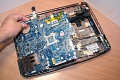 Залишився останній етап розборки, перед тим як з корпусу можна було витягти материнську плату. Відкручуємо два гвинти і від'єднуємо два залишилися роз'єму, акуратно піднімаємо материнську плату за верхній край і витягаємо її з корпусу, не забувши попередньо вийняти заглушки SD і Express карти.