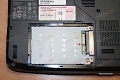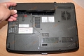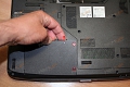 Від'єднуємо акумуляторну батарею і переходимо власне до розбирання ноутбука Acer Aspire 5520G. Якщо нам потрібно зробити тільки профілактику вентиляційній системі, то зняття жорсткого диска можна пропустити, якщо ми розбираємо ноутбук повністю, почнемо з нього. Відкручуємо два гвинти, відкриваємо люк і, зсунувши жорсткий диск вліво, виймаємо його з корпусу.