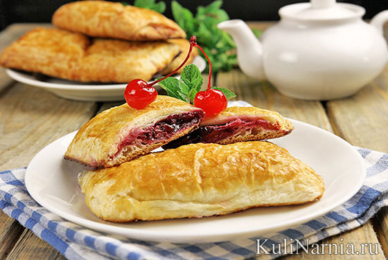 Слойки з замороженої вишнею з листкового тіста готові! Смачного!