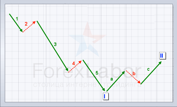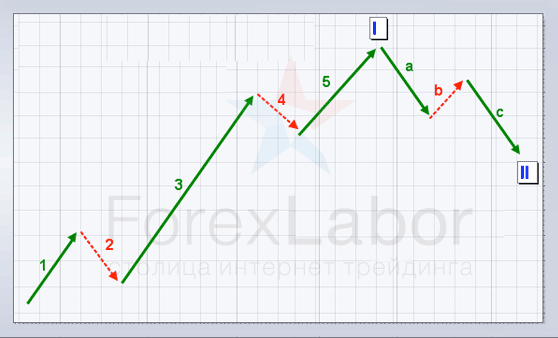 Теорія хвиль Елліотта відкрита Ральфом Нельсоном Елліоттом і набули поширення завдяки Роберту Пректеру. Теорія говорить, що поведінка натовпу змінюється в тому чи іншому напрямку хвилеподібно - за допомогою імпульсних рухів і відкатів. Грунтуючись на цьому, Елліотт виявив хвильові структури в динаміці цінових рухів на фінансових ринках. В рамках даної статті ми зосередимо увагу на комбінації, що включає 5 імпульсів і 3 корекції.