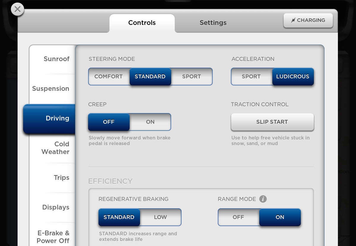 Щоб досягти такого показника, в Tesla Model X P100D треба активувати режим Ludicrous Mode. Втім, це досить довгий процес. Для того, щоб стартанути в «сміховинному» режимі, треба на центральному тач-скрін дисплеї в режимі налаштувань автомобіля включити режим Ludicrous. При цьому машина готується до видачі максимальної віддачі протягом 20 хвилин.