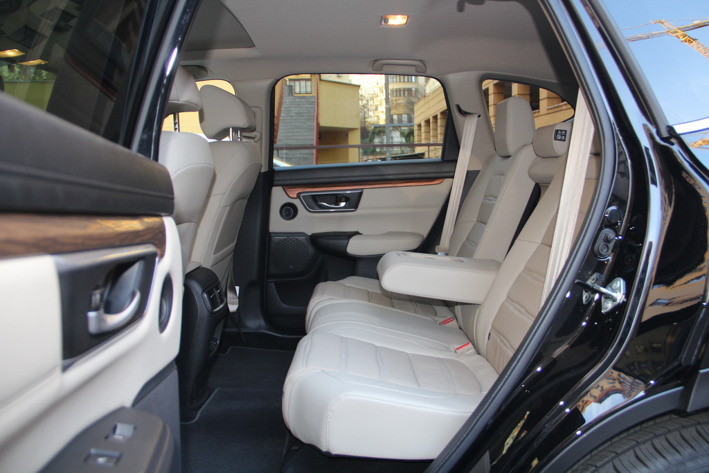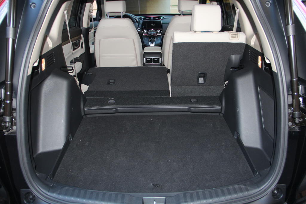 Обсяг багажника став трохи менше, ніж раніше. Але їм як і раніше дуже зручно користуватися завдяки малій вантажної висоті. Механізм складання заднього ряду дещо змінився. Досить потягнути за ручку, як відповідна частина подушки йде вниз (раніше відкидалася вперед) і спинка лягати. Бампер тепер не треба оберігати додаткової накладкою, як того вимагала CR-V четвертого покоління після рестайлінгу. У Honda CR-V 2017 його нижня частина, яка ризикує бути подряпаній вантажем, вже виконана з матового сірого пластику.