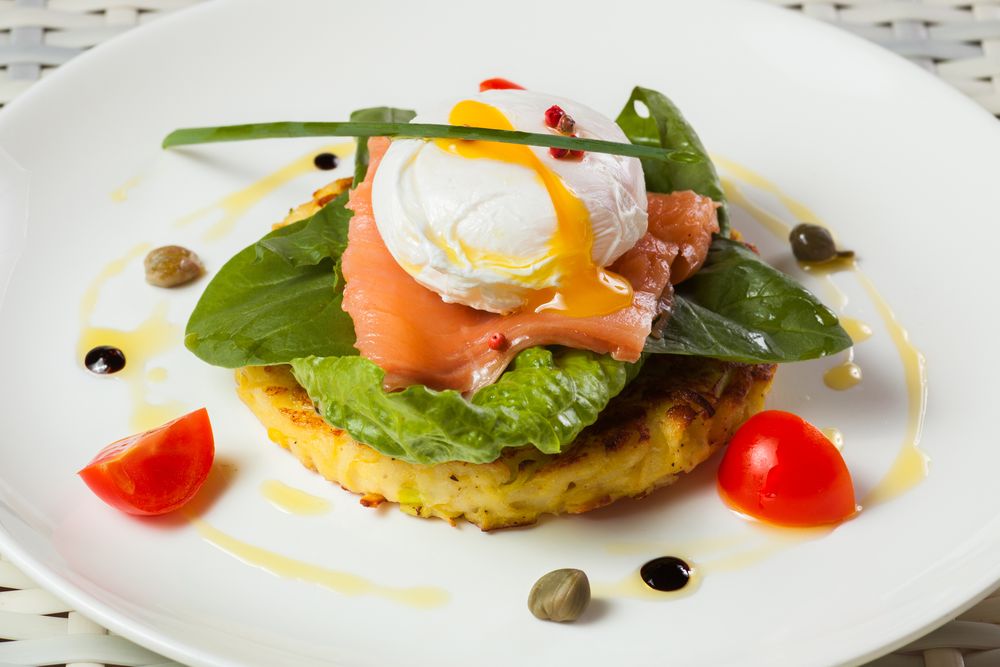 Яйце пашот на оладки з кабачків (Рецепт)