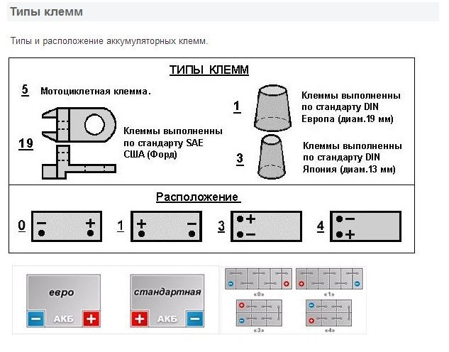 2. Параметр «Розміри і тип підключення клем». В автомобільній промисловості габарити і клемні роз'єми мають стандартні розміри.